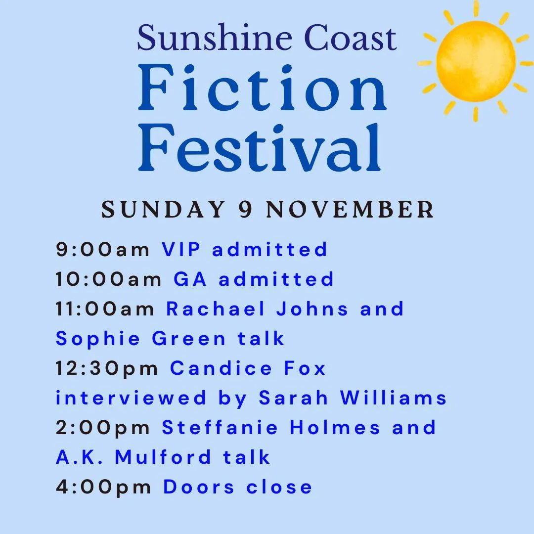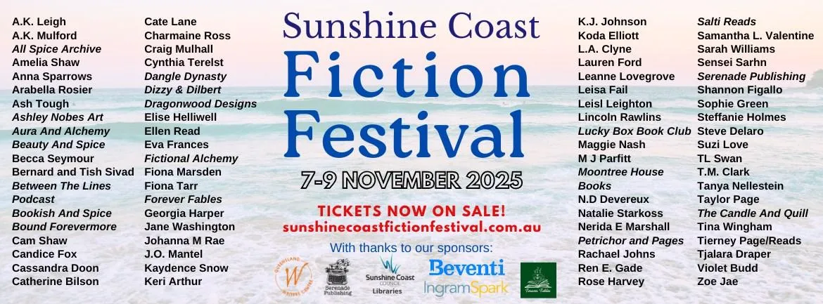 Sunshine Coast Fiction Festival acknowledges the sovereign First Nations peoples of the lands and waterways of the Australian continent and surrounding islands, the many Aboriginal and Torres Strait Islander languages, and tribal groups. We pay our deepest respect to our Elders, past and present, and acknowledge their legacies, cultures, and ways.